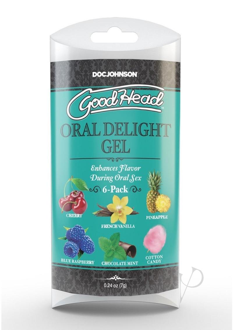 GoodHead Oral Delight Gel .24oz (6 Pack) – Assorted Blue Raspberry, Cherry, Chocolate Mint, Cotton Candy, French Vanilla, Pineapple