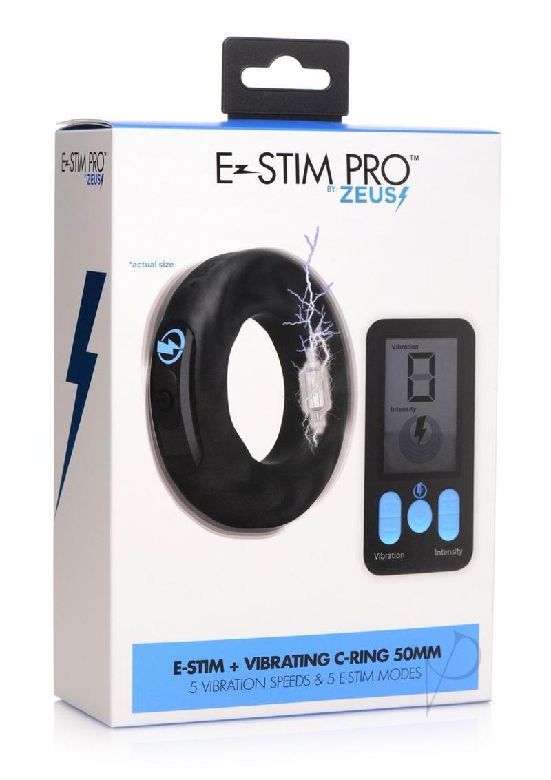 Zeus Vibrating and E-Stim Rechargeable Silicone Cock Ring with Remote Control 50mm – Black
