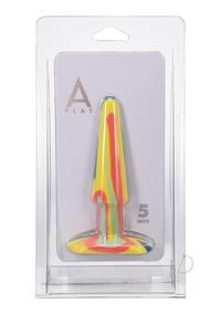 The A-Play Groovy is a soft multi-colored anal plug made of health-grade silicone. Its tapered tip and wide base make for safe, comfortable play, and its firm-yet-flexible feel allows for a little wiggle. Each plug is unique and has a its own variation of the color pattern.