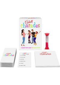 A naughty party game for naughty people! An adults only version of the classic party game. Take turns acting out things like Horny Devil, Mr. Woodcock, and The Little Man in the Boat while teammates try to guess as many answers as possible within a minute. Game Includes: 80 cards with 480 charades, a score-pad, and a 1-minute timer. Includes: 80 Charade cards (480 charades), a one-minute timer, and a scorepad.