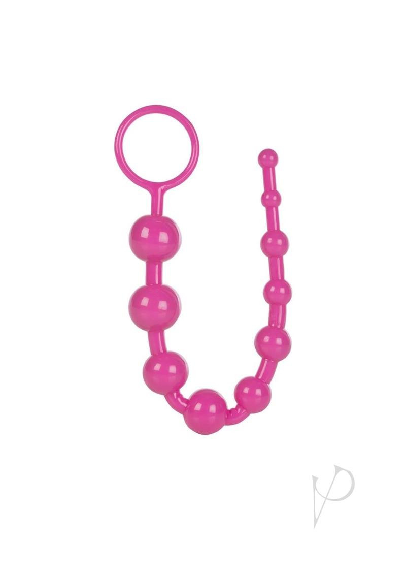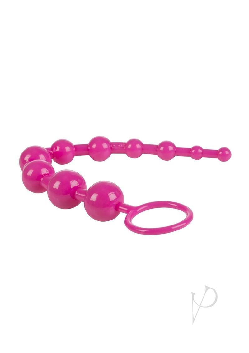 Sized just right, graduated, flexible, durable, pleasure beads with sturdy retrieval ring. TPE. 10.75x 1/ 27 cm x 3 cm.