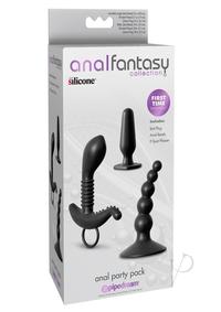 Its a party in your pants and everyone is coming!Throw a backdoor block party for your butt hole with the incredible Anal Party Pack! If you`ve never tried ass play before, this beginners-friendly 3-piece sampler is the perfect kit to get the bubbly bubbling and the sparks flying! Choose between a tapered butt plug, a perfectly angled prostate probe, and cleverly curved suction cup anal beads. All three pieces are sized for first-timers, made from our body-safe Elite Silicone, and carefully designed to excite the right spot every time!But don`t worry, its YOUR ass party and YOU can try em ALL if you want to! The small starter plug has a round, tapered tip, flanged neck, and flared bottom base. The smooth plug fits comfortably between your cheeks and can be worn all day for long-lasting fun. Don`t let its small size fool you though this petite plug will fill you with fun! Its the perfect opening act to start the night as you work your way through the collection. The beginner anal beads have a wide suction cup base, a ball-point tip, and five graduating beads to fill you up. The shaft is firm but flexible and designed to tease and please with each thrust. Pop the beads out one at a time or pull the entire shaft out during mid-climax. Either way, you`ll love the silky-smooth feel and amazing sensations created from each bead.,br> The prostate pleaser also features a tapered tip to ease insertion, but the angle of the bulbous tip is what really makes this sexy lil guy special. The ribbed shaft offers incredible internal pleasure, while the sturdy retrieval ring ensures safe removal and easy handling. One side of the base fits snugly between your cheeks, while the textured nubs on the other side provide external pressure to the perineum. The trio of stimulation will make you cum harder than ever before! Our phthalate-free Elite Silicone is body-safe, hypoallergenic, and made to play hard. Cleanup is snap after the fun with the included Refresh Toy Cleaner and warm water. Insertable Length (Prostate Pleaser): 3.1 (7.9 cm) Insertable Length (Anal Beads): 3.5 (8.8 cm) Insertable Length (Starter Plug): 2.6 (6.7 cm) Width/Diameter (Prostate Pleaser): .83 (2.1 cm) Width/Diameter (Anal Beads): .94 (2.4 cm) Width/Diameter (Starter Plug): 2.6 (6.7 cm) Perfect for Beginners! The Ultimate Anal Training Kit Silky-Smooth Silicone is Body-Safe Kit Includes: P-Spot Pleaser, Anal Beads, Butt Plug