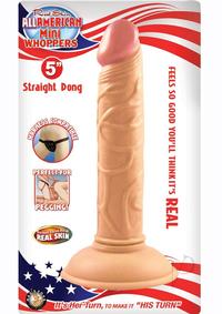 All American Mini Whoppers 5 inches Straight Dong Vanilla. Better Than Real Skin. Feels so good you will think it is real! Sculpted for the size and feel of the real thing. Real skin super flexible dong with suction cup base. Harness compatible. Perfect for pegging. It is her turn, to make it his turn. Made using phthalates free, non-toxic materials PVC. A water based personal lubricant is recommended. Always clean before and after use. All American Whoppers Mini 5 inches Straight Dong Flesh from Nasstoys of New York.