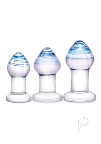 Explore the possibilities of anal training with 3 plugs in graduated sizes. Made of smooth, firm glass that`s easy to clean and body-safe, each plug is tapered for easy insertion and features a flat, flared base that keeps it in place. Each plug features a beautiful combination of shades that adds to the pleasure.