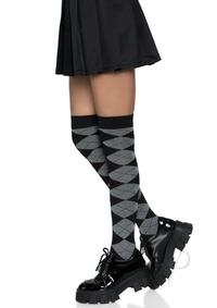 Argyle Knit Over The Knee Socks. O/S Grey