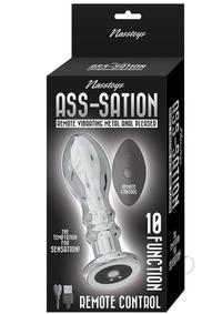Ass-Sation brings together metal and vibration for orgasmic results. For lovers of metal sex toys, you can now take part in a vibration in your favorite material sensation. Explore 10 different vibrating functions using the controls on the toy or the handy remote control. andnbsp;Try immersing the Ass-Sation Remote Control Vibrating Metal Butt Plug in warm or cool water beforehand for fun sensation play. The Pleaser Plug comes in a sleek design that features a rounded tip and prostate-pleasing bulb. The bulb is ergonomically shaped to hit the nerve-ending packed prostate perfectly once fully inserted.The Pleaser Plug is sized for intermediate level manageability- precision tapering, gradual widening and a nice slim neck combine to make it easy to insert, simple to maneuver, and comfortable for longer term wear, thanks to a nice flat base and remote control. Use with any of your favorite lubricants.andnbsp;After use, carefully wash the toy with mild soap and water or Toy Cleaner for even quicker cleanup. 10 functionRemote controlPower button lights upMagnetic chargeWaterproofPhthalates freeRoHS compliantMaterials: Silicone and aluminum, Remote: ABSPlug Size: Length: 4.5, Width: 1.25, Circumference: 4Remote Size: 3 x 1.75Rechargeable: Charging Time: 2.5hrs. Usage Time: 2 hrsVoltage: 3.7V
