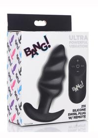 Bang! 21x Vibrating Silicone Rechargeable Swirl Butt Plug with Remote Control – Black