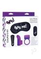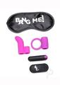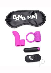 Curated for couples, this set of toys is designed to enhance your fingers and your package with silky smooth buzzing goodness! The textured finger sleeve and love ring feature a hollow cavity to fit the included vibrating bullet, perfect for adding an intense layer of pleasure to your usual bedroom rhythm.The small but powerful bullet vibe features 4 intensities and 7 patterns of vibration to spice up your love sessions andndash; slip into the silky finger sleeve and warm up your partners holes for the main event, or equip the love ring and send buzzing pleasure down the length of your package! The IPX7 waterproofing makes the vibe shower friendly and easy to clean before and after use.The included remote control lets you change up functions as you play andndash; start off slow and flip to the highest settings as you or your partner climax for new orgasmic heights! Recharge the bullet vibe when the power runs low with the included USB charging cable so you can play as soon as the mood strikes.The satin blindfold is smooth and soft, with an elastic head band for comfort for all head sizes. Blind you or your partner and heighten your sense of touch, perfect for use in combination with the other toys in this kit.The vibrating bullet, finger vibe, and love ring are all made from high quality silicone, velvety smooth and phthalate free for a luxurious, body-safe and worry free session. Compatible with water based lubricants only!Included:Satin Bang Me! BlindfoldLove RingFinger Vibe28X Vibrating BulletWireless Controller with 1 CR2032 BatteryUSB Charging CableMeasurements:Blindfold Measurements: 7.5 inches in length, 3.25 inches in widthBullet Measurements: 3 inches in length, 0.8 inches wideFinger Vibe Measurements: 2.6 inches in length, 1.8 inches insertable length, finger ring diameter 0.7 inchesLove Ring Measurements: 2.8 inches in length, 1.8 inch wide, ring inner diameter 1.3 inchesMaterials: Silicone, ABS Plastic, FabricColor: Purple