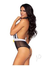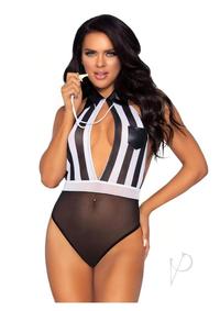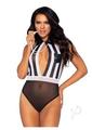 Leg Avenue Bedroom Ref Crotchless Keyhole Striped Teddy and Time-Out Whistle (2 Piece) – O/S – Black/White