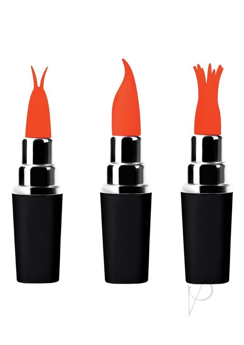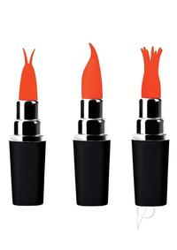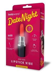 The ultra-discreet Bodywand Date Night Kiss Kiss Lipstick Vibe is designed to look just like your common lipstick, but is enhanced with powerful vibrating stimulation. The slant tip features a center nub for direct stimulation, plus it comes with three additional tips to explore different satisfying sensations.