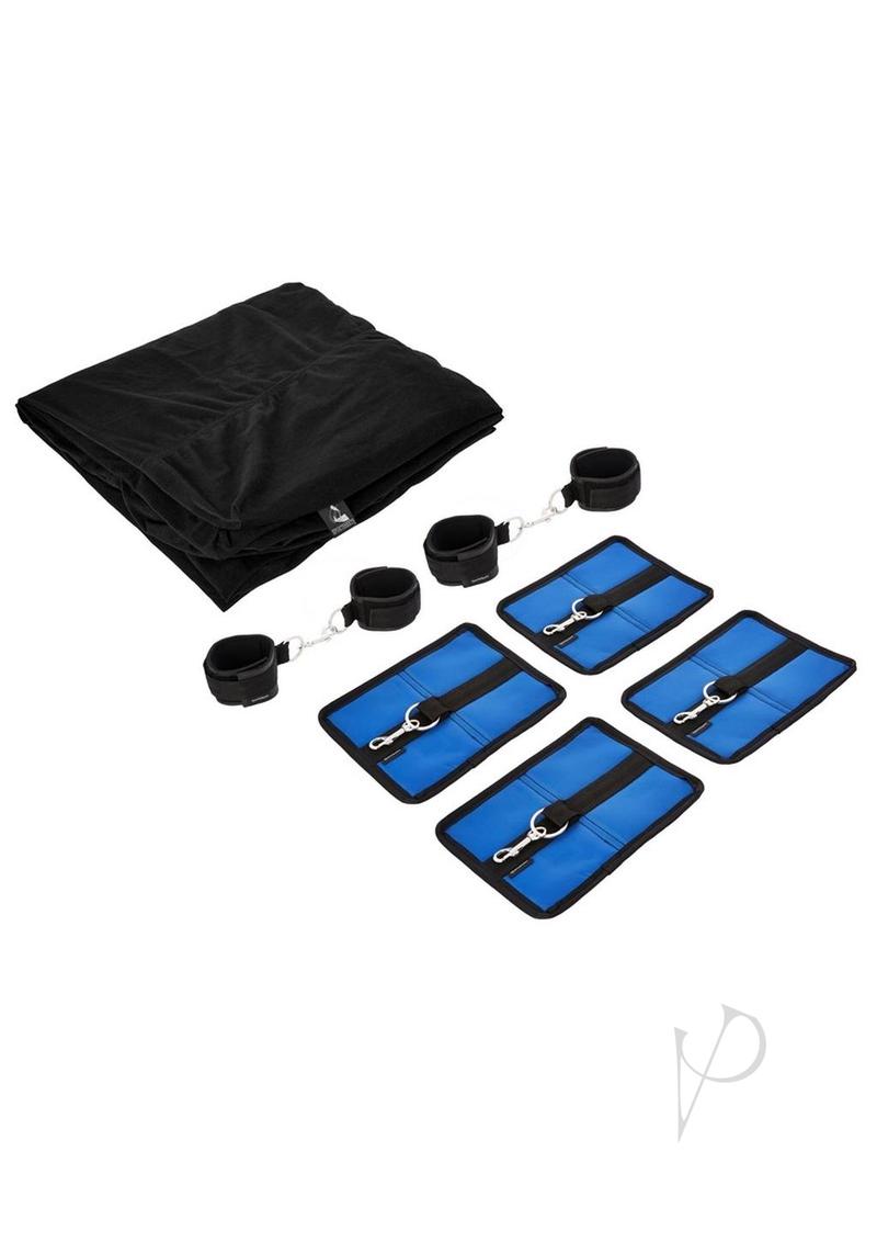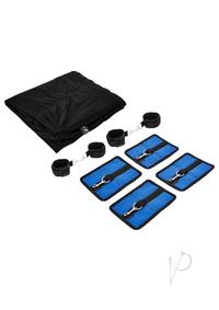 The Sportsheet Bondage Bed Sheet is a velcro bed sheet that allows you and your lover to explore fun bondage scenarios without the danger and complexity of metal cuffs. This velvety black sheet is supported by four straps that secure everything to your mattress. There`s a drawstring that keeps the sheet puled tightly around your mattress. This way you can get as crazy as you want and not end up pulling the sheet off of the bed. That would be lame. The wrist cuffs are locked to these velcro anchor pads. These stick to any part of the sheet so you can set it up however you`d like it. The velcro hold onto the fabric is super strong and holds against the strongest partner, but can be easily released by peeling it up at the corner.