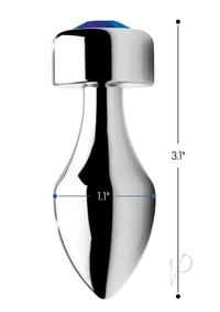 Adorn your derriere with this dazzling blue gem! The weighted base adds a comfortable and satisfying weight to your anal play, opening a new world of sensation for enthusiasts. The plug is made with nickel free aluminum alloy, perfect for temperature play andndash; heat it up or cool it down for even more sensation.Measurements:Overall length 3.1 inches, insertable length 2.5 inches, diameter at widest point 1.1 inches, base height 0.6 inches.andnbsp;(Circumference 3.455)Color:andnbsp;Blue