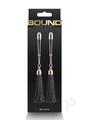 Bound Adjustable Nipple Clamps are for erotic and stimulating sensations. Made from nickel-free metal, Bound`s clamps feature silicone tips for a better comfort and fit. Hanging tassles.