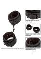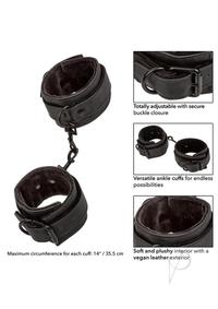 Totally adjustable ankle cuffs with secure buckle closures. Universal clasps and D-rings with swivel design for full dexterity. Soft and plushy interior with a vegan leather exterior. Double padded, double stitched. Functional, durable and textured design.