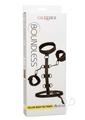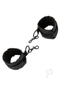 Heavy duty collar with universal cuffs and adjustable restraints. Reversible design to wear in front or back. Soft and plushy interior with vegan leather exterior. Detachable cuffs for independent use. Universal clasps, D-rings and O-rings with swivel design. Non-Tarnishing, Nickel-Free.