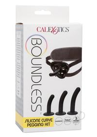 Introducing the Boundlessandtrade; Silicone Curve Pegging Kit, a complete package designed for unforgettable pegging experiences. This kit includes a universal harness with fully adjustable waist and thigh straps, ensuring a secure and comfortable fit that can be tailored to your body shape.The harness features a supportive and form-fitting design, providing stability and control during play. Its discreet snap design allows for easy swapping of the three included curved silicone probes. These probes come in different sizes, allowing you to customize your experience and explore various levels of pleasure.Crafted from high-quality silicone, the probes offer a velvety smooth texture. The curved design targets sensitive areas, delivering precise stimulation and intensified sensations.Whether you`re a beginner or an experienced user, the Boundlessandtrade; Silicone Curve Pegging Kit caters to your desires. Embrace the versatility and freedom this kit offers, as you indulge in thrilling pegging adventures.