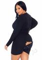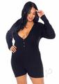 Leg Avenue Brushed Rib Romper Long Johns with Cheeky Snap Closure Back Flap – 1X/2X – Black