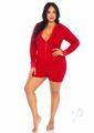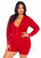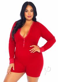 Leg Avenue Brushed Rib Romper Long Johns with Cheeky Snap Closure Back Flap – 1X/2X – Red