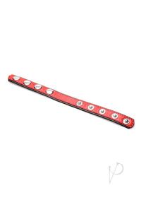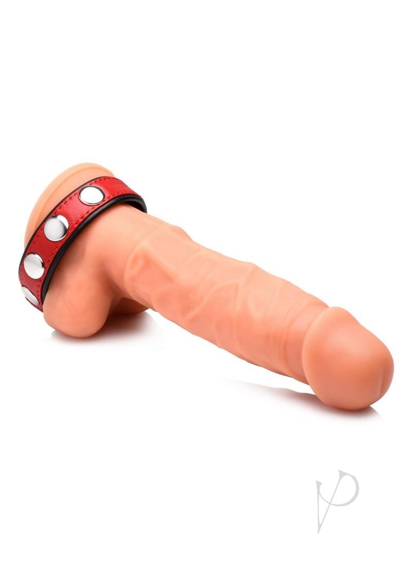 Enjoy the comfort and ease of a leather cock ring that snaps on and snaps off! The real leather is perfect for a custom fit; over time the leather stretches around the shaft and forms to your body. If you were ever worried about getting a cock ring off when it got too tight, then this is the cock ring for you! Simply pull the strap to unsnap and release, and you`re free!The snaps are made of nickel-free metal so it`s body-safe, and the real leather is soft against the skin. Try out different snaps until you find the perfect, snug fit and enjoy a classic look and feel with leather and metal.To clean the leather, use a damp cloth and mild soap and water to spot clean or wipe down the straps. You can also use a toy cleaner to wipe the straps clean. Then use a leather conditioner when needed to keep the leather nice and soft for long-term use.Measurements:Overall length: 8.5 inches, Strap width: 0.6 inches , Inner diameter adjusts from 0.8 to 2.25 inchesMaterials: Leather, Metal Color: Red Key Features:Real Leather: The strap is made of real leather that will stretch and adjust for a custom fit.Nickel-Free Metal Snaps: The metal snaps are nickel-free and body safe.Adjustable and Easy Release: The straps are fully adjustable and the snaps allow for easy and quick release if the harness gets too tight.