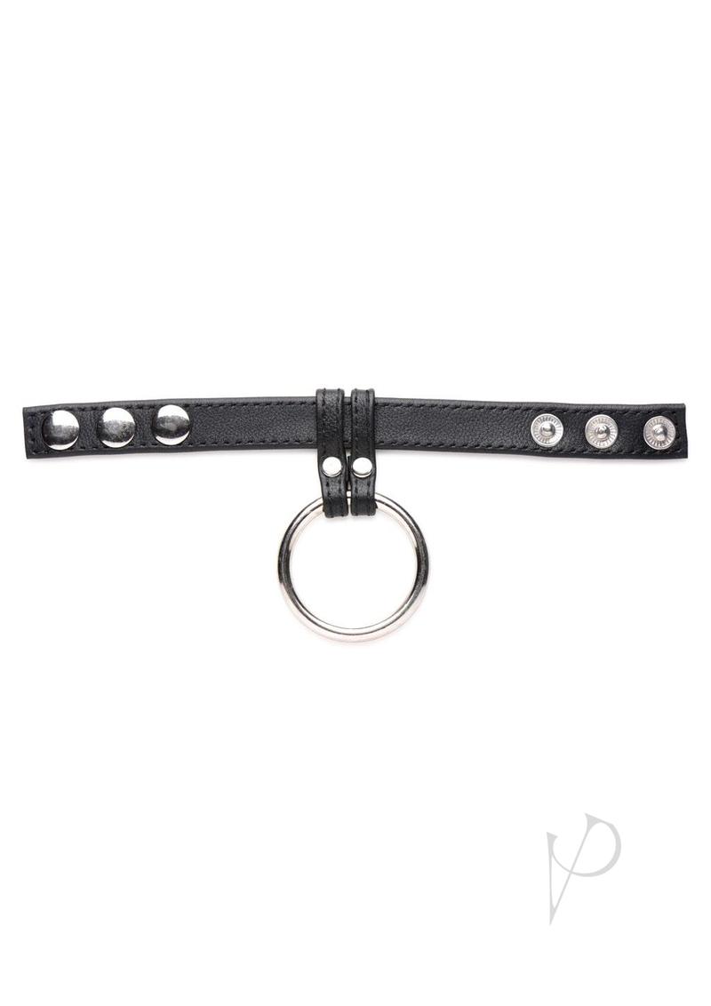 Be led into desire with this leather and steel cock and ball ring! The leather straps are adjustable with nickel-free, metal straps that can easily be snapped on for easy application or release. The straps hug the balls and wrap around the shaft. The metal O-ring sits above the shaft and can be used as a tether for a leash to be hooked to.Let your lover lead you by the cock and balls with this sexy and comfortable cock ring! Great for helping to maintain an erection, it also looks and feels good, too! The leather will stretch over time for a perfectly custom fit and can be easily taken on or off whenever needed.To clean the leather, use a damp cloth and mild soap and water to spot clean or wipe down the straps. You can also use a toy cleaner to wipe the straps clean. Then use a leather conditioner when needed to keep the leather nice and soft for long-term use.Measurements:Overall length: 8.25 inches, Strap width: 0.6 inches, Cock and ball ring inner diameter adjusts from 1.5 inches to 2.25 inches, Metal ring inner diameter: 1.5 inchesMaterials: Leather, Metal Color: Black, Metal Key Features:Metal Pull-Ring: The metal O-ring attached to the cock ring is perfect for adding to a sexy aesthetic but can also be attached to leash in order to be led around by the genitals.Real Leather: The strap is made of real leather that will stretch and adjust for a custom fit.Nickel-Free Metal Snaps: The metal snaps are nickel-free and body safe.Perfect for Beginners: Putting this cock ring on and taking it off are easy and painless, so it`s great for beginners trying it out for the first time!
