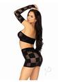 Leg Avenue Checkerboard Net and Opaque Bandeau Mini Skirt and Arm Warmers – O/S – Black