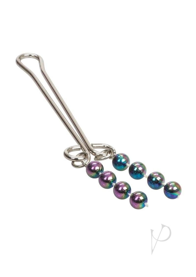 This Cleopatra Clitoral Jewelry is non-piercing body jewelry. It features a loop that fits over the clitoris. It is a nickel-free, non-tarnishing silver clit clip with dangling metallic beads. Adorn your body with the jewelry that will ignite your passions and invite intrigue!
