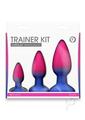 This eye-catching Trainer Kit includes three multi-colored plugs in graduated sizes with long necks and tapered tips for easy insertion, ideal for training solo or with a partner. Made of firm, pliable silicone. Suitable with all lubricants.