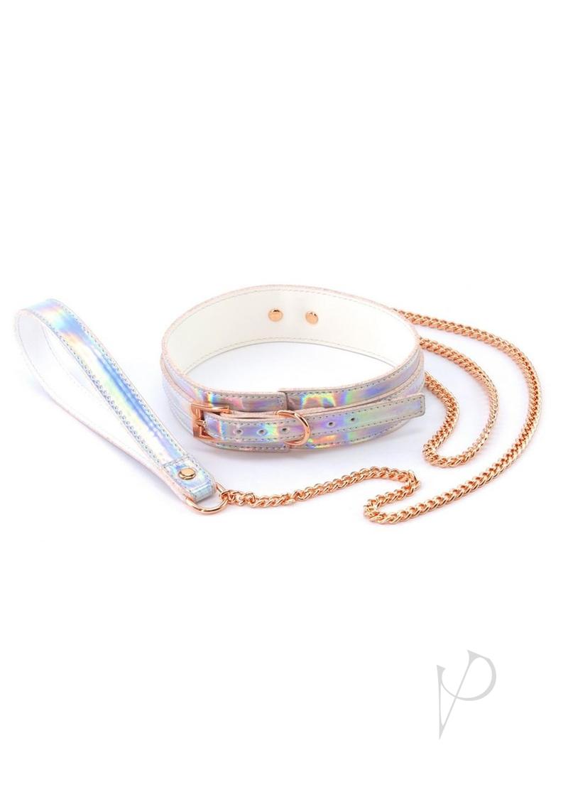 Light up the night with Cosmo`s holographic restraints. Accented with Rose Gold nickle free hardware and fully adjustable for universal fit. Made from easy to clean Vinyl.