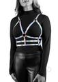 Dress up your assets with Cosmo`s stylish chest harness.andnbsp;Accented with rose gold nickel-free hardware and adjustable straps for the perfect fit. Made from easy to clean vinyl. Cosmo harnesses are available in a variety of styles and sizes.