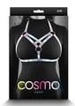 Dress up your assets with Cosmo`s stylish chest harness.andnbsp;Accented with rose gold nickel-free hardware and adjustable straps for the perfect fit. Made from easy to clean vinyl. Cosmo harnesses are available in a variety of styles and sizes.