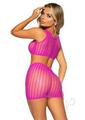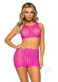 Leg Avenue Crochet Net Tank Crop Top and Mini Skirt (2 pieces) – O/S – Neon Pink