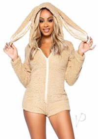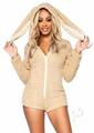 Leg Avenue Cuddle Bunny Ultra Soft Zip Up Teddy with Bunny Ear Hood and Cute Bunny Tail – Medium – Beige