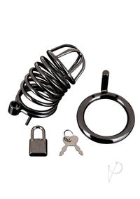The Deluxe Chastity Cage Device offers the best of comfort and security. The rings consist of three interlocking pieces that fit together. The two guide pins hold the top pieces together. The oval locking pin goes through the middle recessed hole connecting the cage portion to the ring. Assorted size rings included in each package allow you to customize fit. Restricts you from touching your genitals for sexual pleasure and gives the keyholder control over the sexual fulfillment.