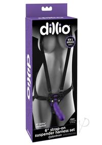Ladies, when youre looking for a stylish strap-on harness system that stays in place when the action heats up, the Dillio 6 Strap-On Suspender Harness Set is the perfect choice! With two heavy-duty adjustable nylon shoulder straps connected to a comfortable strap-on harness, this sexy suspender system makes sure your strap-on Dillio stays exactly where you want it to! By using a stretchy silicone O-ring to hold the Dillio in place and four perfectly placed support straps, this one-of-a-kind strap-on setup will have you in total control of the fun and looking amazing! What makes this unique harness set even better is the included hand-crafted American-made Dillio that provides all the stimulation! The phthalate-free 6 Dillio Twister was designed to deliver mind-blowing thrills and spine-tingling chills! The soft nylon shoulder straps, waist straps, and thigh straps easily adjust to fit most sizes, while the smooth harness feels great against your skin. The American-made Dillio is body-safe, latex-free, and proudly made in our state-of-the-art manufacturing facility. The included Dillio can be easily removed from the silicone O-ring after the fun, and cleanup is a snap with Pipedream toy cleaner and warm water. The Suspender Harness works well with most suction-cup Dillio and King Cock dildos, giving you endless opportunities to explore the world of erotic strap-on role playing. Use plenty of Moist personal lotion for an extra wet, extra wild encounter. Size Harness Fits waists up to 60 (152 cm) Dildo Length: 6.5 (16.5 cm) Insertable Length: 6 (15.2 cm) Width: 1.6 (4 cm)