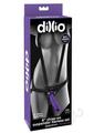 Dillio Strap-On Suspender Harness Set Black with Silicone Dildo 6in – Purple