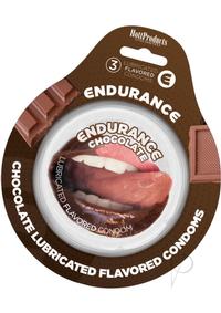 Endurance Flavored Condoms are made from the Finest Latex, and are contoured to give one and all a snugcomfortable Fit! They are Flavored with a Silicone Lubricant that promotes extra Comfort during Sexual Activity. Attractive Disc with beautiful foil cover makes for a very discreet classy look! 3 condoms per pack.CHOCOLATEFeatures:Flavor Condoms3 Condoms Per Pack