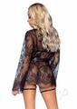 Leg Avenue Eyelash Lace Garter Teddy with G-String Back and Adjustable Straps, Lace Robe and Ribbon Tie (3 pieces) – Large – Black