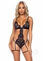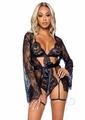 3 PC Eyelash lace garter teddy with g-string back and adjustable straps, lace robe, and ribbon tie.