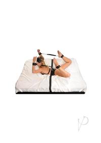 Fasten your sheet belt and get ready for a wild ride! The Fetish Fantasy Bondage Belt Restraint System will turn your bedroom into the ultimate erotic playground. Perfect for beginners and seasoned enthusiasts alike, the kit comes complete with an adjustable bondage waist belt, adjustable under-mattress restraint strap, ankle cuffs, wrist cuffs, 4 tethers, and free satin love mask. The tethers, cuffs, and mattress strap all interconnect using heavy duty metal-clips and high-strength o-rings, ensuring your lover wont escape any time soon. The waist belt easily adjusts to fit up to size 40 and connects using sturdy plastic clips, and the under-mattress restrain strap adjusts to fit up to a king-size mattress. The belt, tethers and straps are all made from durable nylon and they`re made to play hard. Use your imagination and explore new positions you never dreamt were possible…the rest is up to you!
