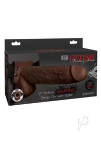 Fetish Fantasy Series Hollow Squirting Strap-On Dildo with Balls and Harness 9in – Chocolate