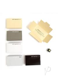 Who will be the dominant player today and who will play a more submissive role? Only the envelope can decide Fifty Days of Play has 50 secret envelopes that progress through 5 levels of play, ranging from intimate moments together, through stimulating scenarios, to erotic surprises. Not only can you use the envelopes as part of this game, you can sneak envelopes into your partner`s purse or wallet as a naughty surprise that is waiting for them to get home. On a weekend away why don`t you both randomly choose a few envelopes and use them to fill your time away with erotic ideas? Fifty Days of Play is a versatile game for you both to share whenever, and however you like.