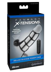 Turn your penis into an instant pleasure machine with the incredible Fantasy X-Tensions. Now you can be all the man you can be and satisfy your partner with this easy-to-use erection enhancer. Developed as a safe, affordable, non-surgical alternative to expensive medical procedures and pills, your Fantasy X-Tension will give you the biggest, thickest, most satisfying pleasure rod you ever imagined! Perfect for men with ED and midway performance problems, your new enhancer will deliver results that both partners will love!The Deluxe Silicone Power Cage is the ultimate erection enhancer! With this silicone cage wrapped snug around every inch of your manhood, you`ll maintain rock hard erections and prolong the fun while you stimulate your partner. The stretchy ball strap prolongs ejaculation for explosive climaxes, while the hygienic cage leaves your cock open to feel every sensation and enjoy the natural touch of your lover. You`ll discover thick, throbbing erections and your partner will love the cage`s added sensations. The vibrating clit stimulator activates the tiny ticklers and delivers direct stimulation to their most sensitive spot. Just one click of the powerful waterproof micro vibe and youll make them cum harder than ever before! Try it in the shower or spa and turn bath time into pleasure time!Cleanup is a snap after the fun with the included toy cleaner and warm water. One size fits most. This is not a condom. Requires 3 LR44 / AG13 (1.5V) batteries (included).- The Ultimate Couples Erection Enhancer – Hygienic Elite Silicone Cage Provides Extra Sensations – Powerful Vibrating Clitoral Stimulator – Prolongs the Fun as a Cock Ring – Phthalate-Free Item measurements: Length: 4.75 (12 cm) Width: 1.3 (3.3 cm) Inner diameter: 1.5 (3.8 cm)