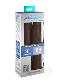 Instantly transform your penis into a pleasure machine with Fantasy X-tensions Elite! Made from ultra-hygienic Elite Siliconeandtrade;, this performance-enhancement sleeve fits like a glove and feels like a second skin, giving wearers extra length, increased girth, and maximum confidence. Satisfy your partner and avoid embarrassing midway letdowns with your new secret weapon! Perfect for people with ED and performance anxiety, Fantasy X-tensions Elite enhancers will deliver results both partners will appreciate.Your silicone Fantasy X-tension Elite is a customizable extension that can be easily trimmed at the base for a perfect fit. Itandrsquo;s super-stretchy to accommodate most sizes and snug enough to help you last longer. Both partners will enjoy deeper penetration with the removable extender, while the ultra-realistic sleeve makes the wearer 66% thicker all around. This could be you!KEY PRODUCT FEATURESandbull; 3 (7.6 cm) removable extenderandbull; Adds up to 66% girthandbull; High quality Elite Siliconeandtrade;andbull; Lifelike textures andamp; detailsandbull; Trim for perfect fitandbull; Stretches to fit most sizesandbull; Perfect for people with ED