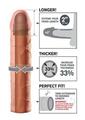 Turn your penis into an instant pleasure machine with the incredible Fantasy X-Tensions. Now you can be all the man you can be and satisfy your partner with this easy-to-use erection enhancer. Developed as a safe, affordable, non-surgical alternative to expensive medical procedures and pills, your Fantasy X-Tension will give you the biggest, thickest, most satisfying pleasure rod you ever imagined! Perfect for men with ED and midway performance problems, your new enhancer will deliver results that both partners will love!The Perfect 2 Extension is a customizable extension that can be easily trimmed at the base for a perfect fit. It`s super-stretchy to accommodate most sizes and snug enough to help you last longer. Your partner will enjoy deeper penetration with the 2 extension at the tip, while the ultra-lifelike shaft makes you 33% thicker all around. The soft Fanta Flesh material feels just like a second skin, giving you the length, girth, and confidence you need to satisfy your lover.Cleanup is a snap after the fun with the included toy cleaner and warm water. One size fits most. This is not a condom.- 2 (51mm) Extension – Adds 33% Girth – Ultra-Lifelike Fanta Flesh – Trim for Perfect Fit – Phthalate-Free Item measurements: Length: 8 (20.3 cm) Width: 1.75 (4.4 cm) Inner diameter: 1 (2.5 cm)