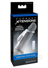 Turn your penis into an instant pleasure machine with the incredible Fantasy X-Tensions. Now you can be all the man you can be and satisfy your partner with this easy-to-use erection enhancer. Developed as a safe, affordable, non-surgical alternative to expensive medical procedures and pills, your Fantasy X-Tension will give you the biggest, thickest, most satisfying pleasure rod you ever imagined! Perfect for men with ED and midway performance problems, your new enhancer will deliver results that both partners will love!The Vibrating Cock Sling is the ultimate erection enhancer! With two super stretchy rings wrapping around every inch of your manhood, you`ll maintain rock hard erections and prolong the fun while you stimulate your partner. Hidden on top of the sling is a powerful cordless micro vibe that delivers incredible internal thrills with each thrust. You`ll enjoy thick, throbbing erections and your partner will love the bullet`s added sensations. Try it in the shower or spa and turn bath time into pleasure time!Cleanup is a snap after the fun with the included toy cleaner and warm water. One size fits most. This is not a condom.- Super-Stretchy Rings – Powerful Micro Bullet – Maintain Firm Erections – Increased Sensations for Your Partner – Phthalate-Free – Includes FREE BatteriesItem measurements: Length: 5.5 (14 cm) Inner diameter: 1.5 (3.8 cm)