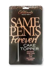 Same Penis Forever Cake Topper is a glittering rose gold 6 inch cake topper on non shedding glitter paper. This elegant cake topper is a great accessory for a bachelorette party and is our newest addition to the Glitterati Penis line of bachelorette party goods. * This product is flammable and should not be used near flame.