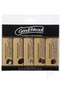Make all your sexual activities smoother with these delicious GoodHead glides. This pack of water-based lubes includes 5 flavors: Chocolate Mint, Dark Chocolate, White Chocolate, Chocolate Cherry, and Chocolate Strawberry. The slippery glides reduce friction and are completely body-safe and vegan.