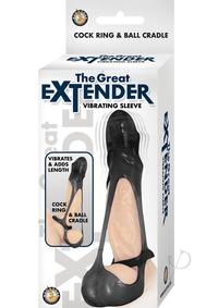 Great Extender Vibrating Sleeve Cock Ring and Ball Cradle – Black