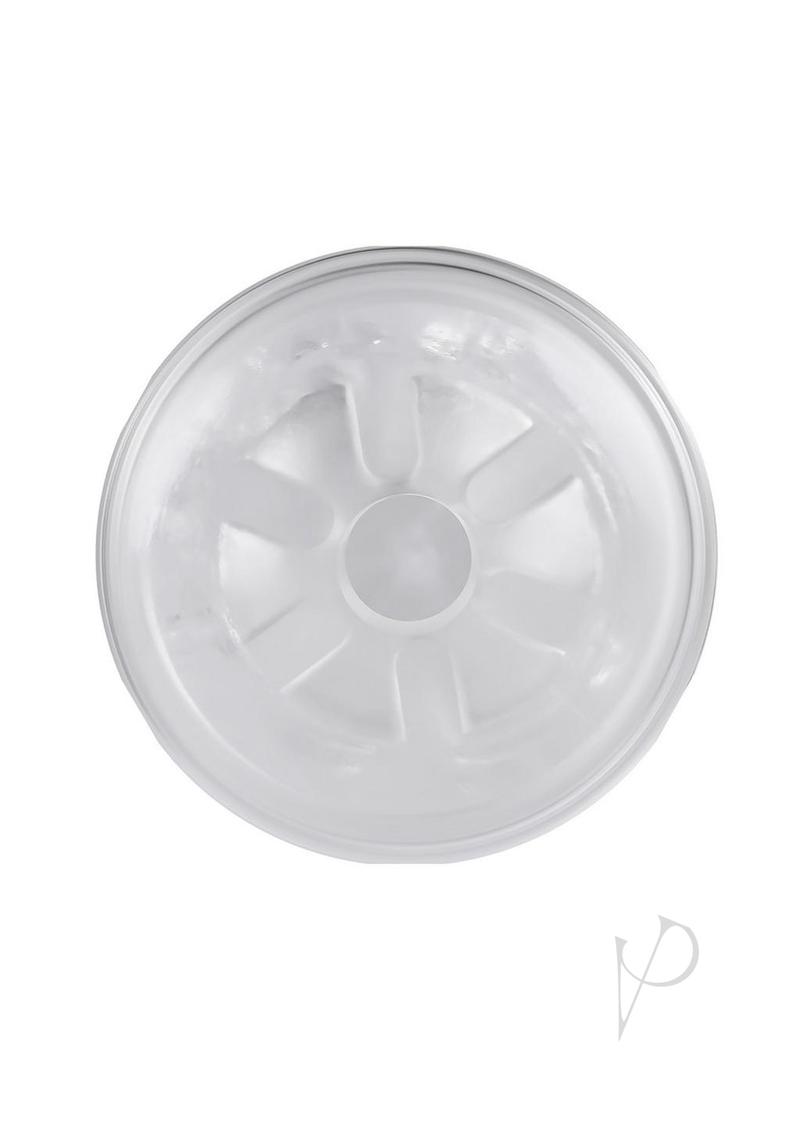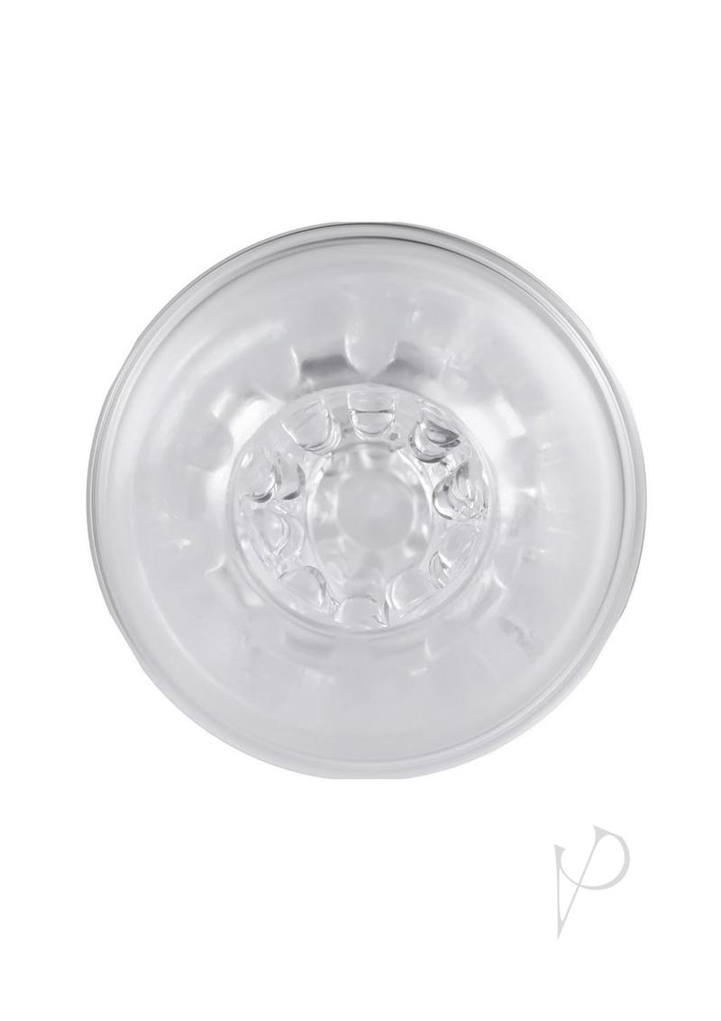 Allow the pleasure possibilities to unfold with this unique dual-ended stroker thatandrsquo;s beautifully transparent for an erotic see-through experience. Two separate entries with varying sizes (one tight, one loose) lets you choose your adventure inside the circular beaded chamber thatandrsquo;s soft and squishy, yielding yet firm. An included vibrating ring lets you experiment with intense stimulation while you play! The hard plastic exterior canister is textured for an easy grip while caps at both ends ensure safe storage and protection. Sleeve pops out for cleaning.Double-ended clear stroker2 entries for varied experienceTight entry .5 diameterLoose entry 1.15 diameterBeaded, circular inner channelClear for erotic see-through lookTextured canister for easy hand gripDual caps for storage, caps lock into placeStroker sleeve removes for cleaningMade from squishy soft TPE rubberCanister made from durable ABS plasticHeight: 6.75, Depth: 2.72, Width: 2.72Weight: Over .5 lb Phthalate andamp; latex freeWaterproof andamp; submersibleIncludes vibrating C-Ring