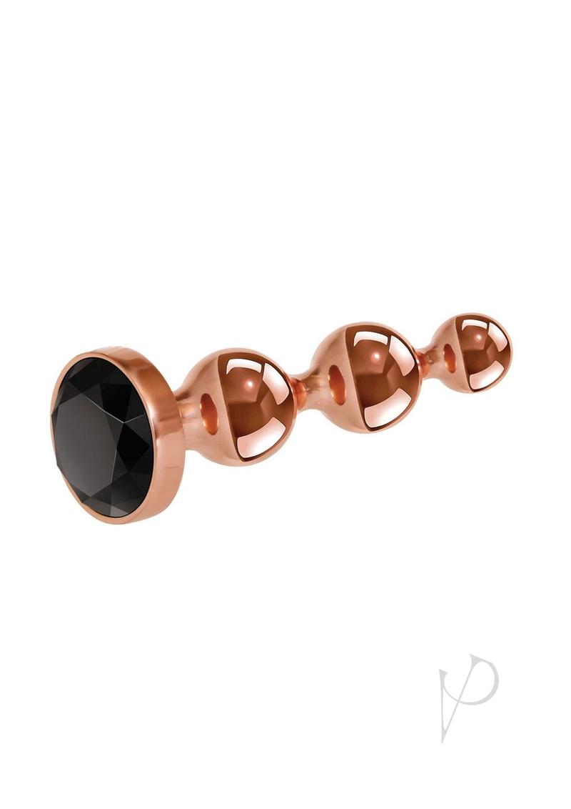 Small, sleek and stylish andndash; everything you want in a body-safe metal plug that features a sparkling black gem at the base! Savor the bulbous, nonporous, shiny shaft that with incremental bulbs that look shapely and feel even better.Discover how this shapely metal sculpted plug can enhance your erotic play time and try sensation play by warming or cooling your plug first with water.Small rose gold beaded metal plugIncremental 3-bead designCool or warm with water for sensation playStylish sparkling black gem baseMade from body-safe nonporous aluminum alloyGem made from durable ABS plasticWide safety baseWaterproofPhthalate and latex freeLength: 4.14andrdquo;, Depth: 1.25andrdquo;, Width: 1.25andrdquo;Insertable: 3.75andrdquo;, .9andrdquo; diameterWeight: Under .5 lb